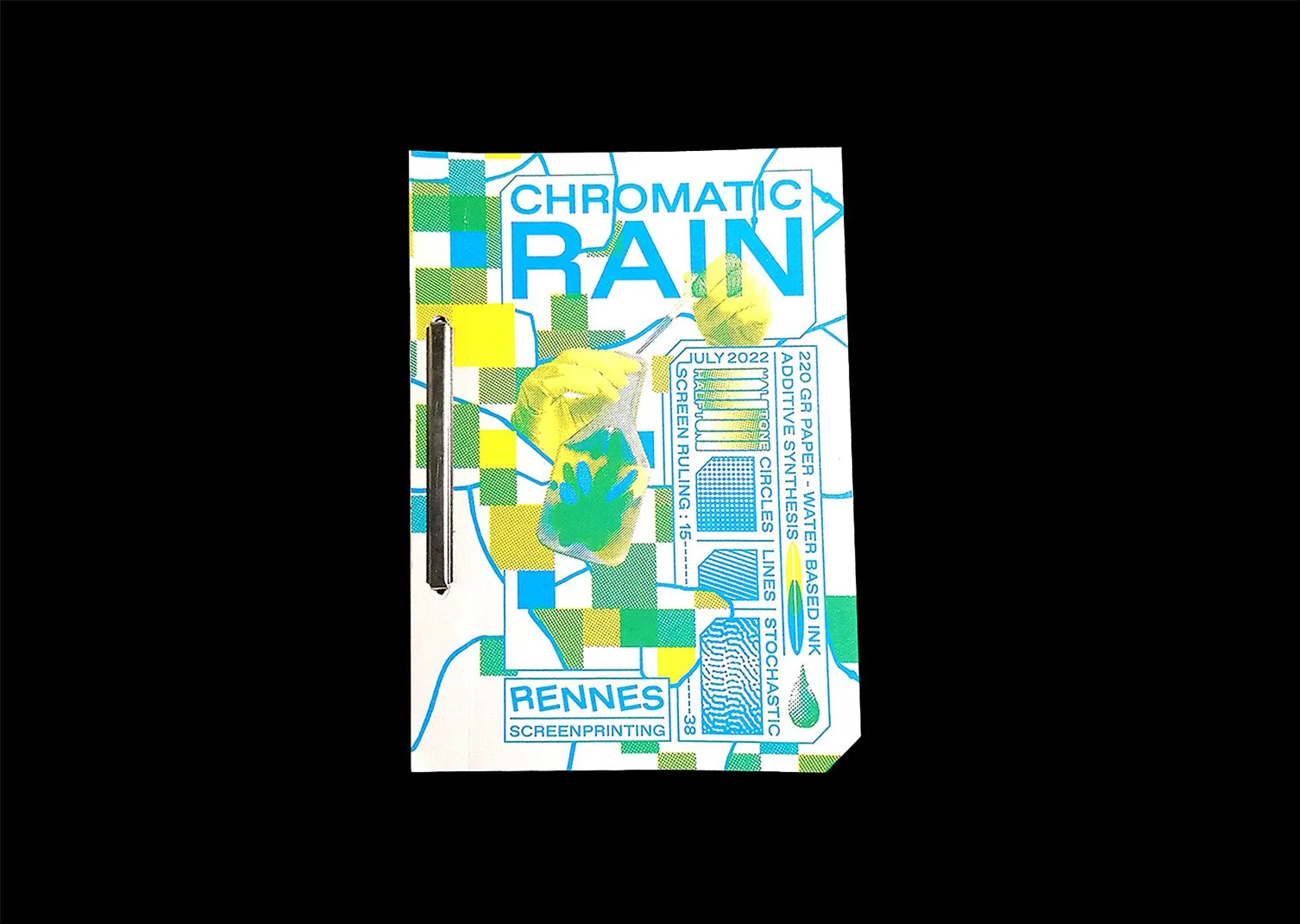Micro édition faite en sérigraphie durant mon stage au Marché Noir. J’ai eu la chance d’imprimer une vingtaine d’éditions en autonomie. J’y illustre des éléments de la ville de Rennes, tout en explorant les multiples possibilités graphiques qu’offre ce système d’impression : chromies, trames, procédés spécifiques comme impression additive RVB.